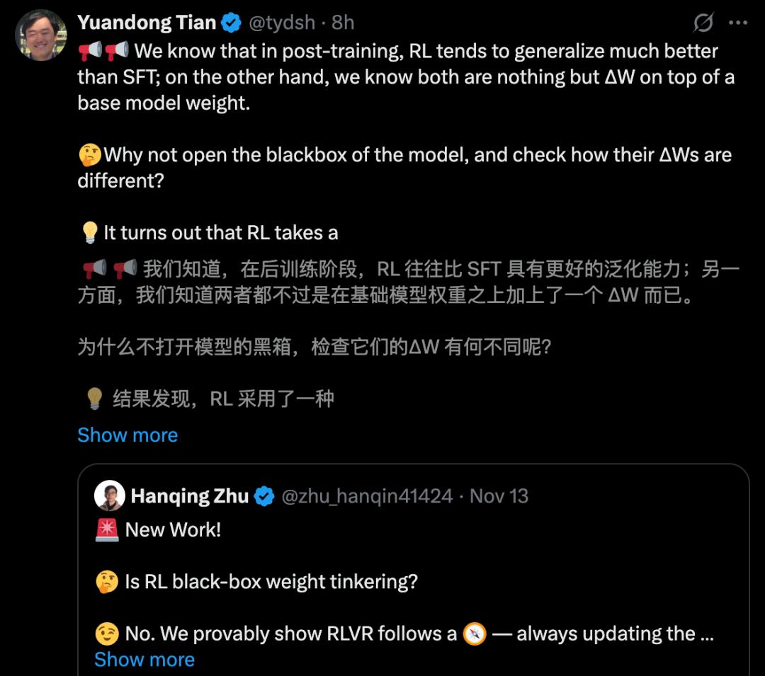 巧的是,这一观察与近期MIT、斯坦福等机构研究的观点一致。此前研究表明,最终策略也与初始策略保持KL上的接近。