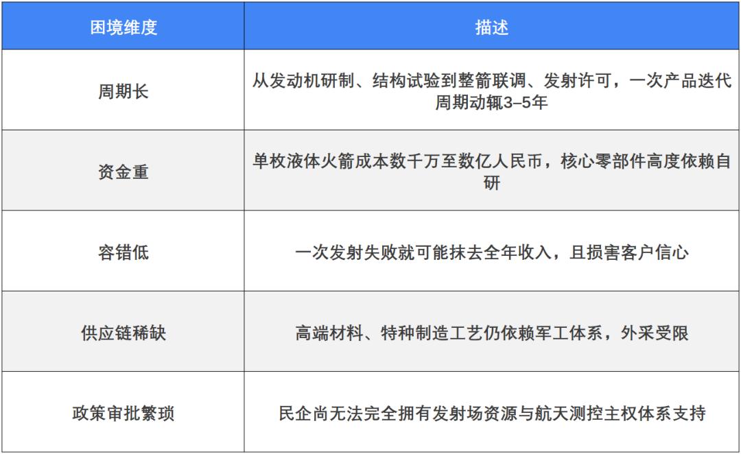 相比软件类创业或轻资产制造,火箭是一条极长周期、极高门槛、极不确定的赛道,其成长路径带有如下特征: