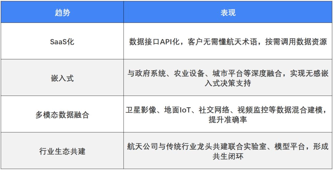 - 行业转化效率低:传统行业对“天基数据”的认知不足、落地能力弱,导致从数据到产品之间缺乏转化机制。