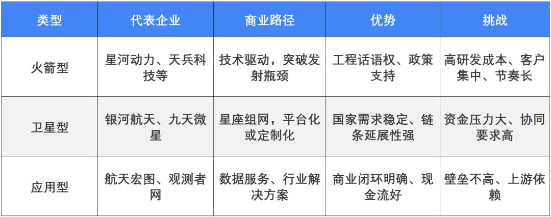 据氪睿研究院对2020–2025年的产业资料梳理,目前中国商业航天产业中,已形成三类主要的企业模型: