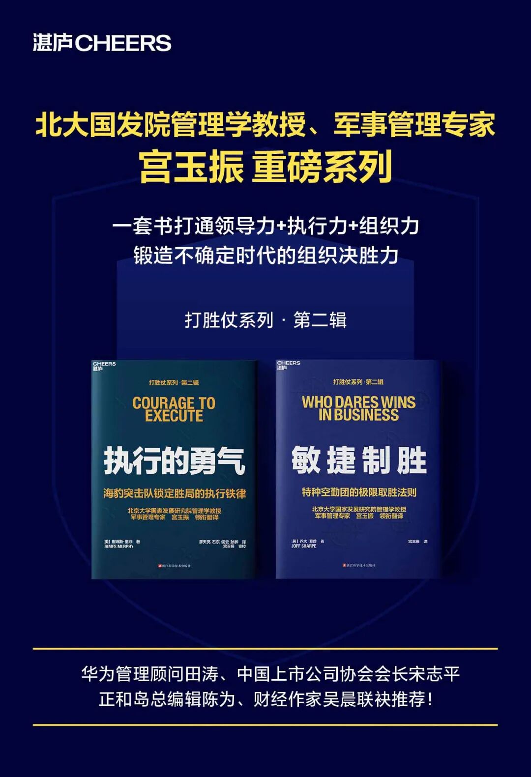 正是基于这样的常识与共识,6年后的今天,湛庐文化推出了“打胜仗系列·第二辑”,由宫玉振教授领衔翻译,汇集了《执行的勇气》与《敏捷制胜》——两本从特种部队实战经验中淬炼而成的管理力作。