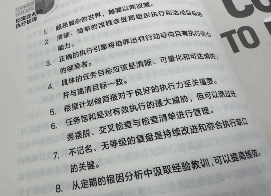 执行力不是口号,而是流程、纪律与勇气的结合;高效的执行需要打造明确而令人信服的高清目标(HDD),而不仅仅是大致的愿景;没有完美的信息,等待完美信息的组织注定会失败……