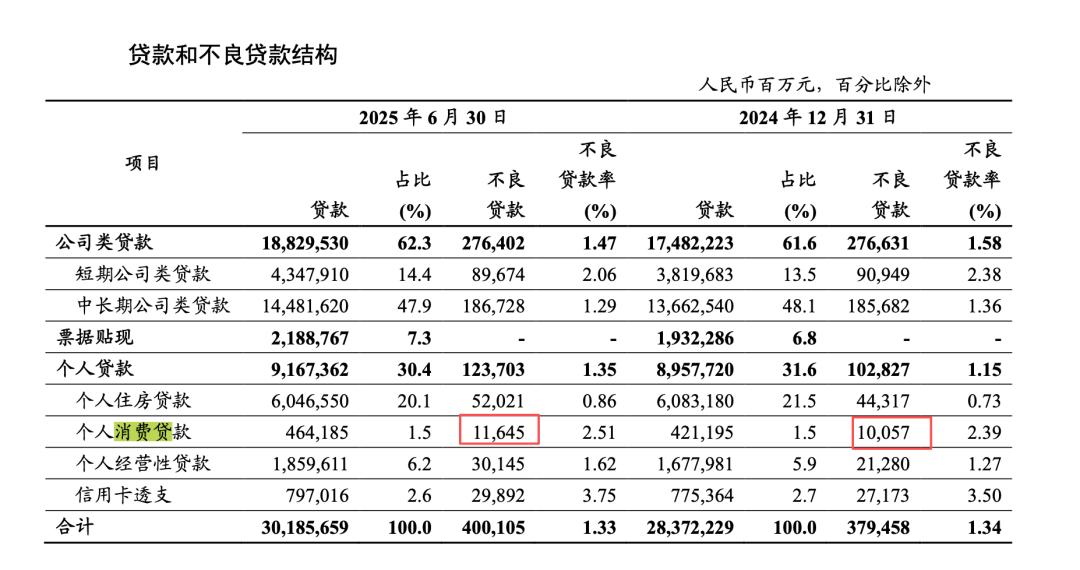 比如工行今年上半年个人消费贷不良率2.51%,而2024年末为2.39%。