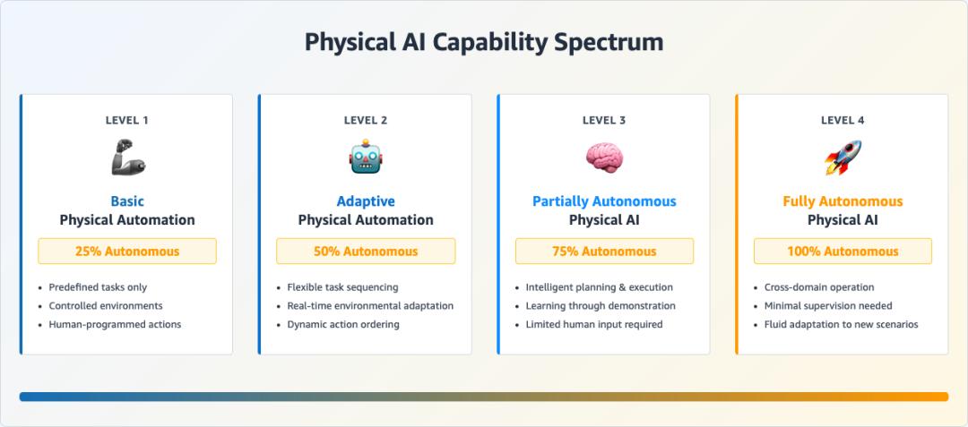 同时,亚马逊给出了实体智能能力层级: