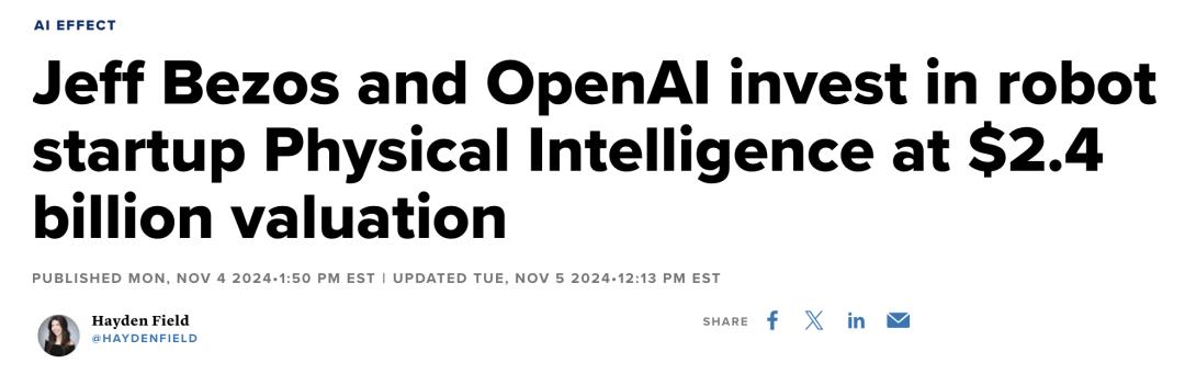 早在去年,他就投资了机器人AI公司Physical Intelligence。