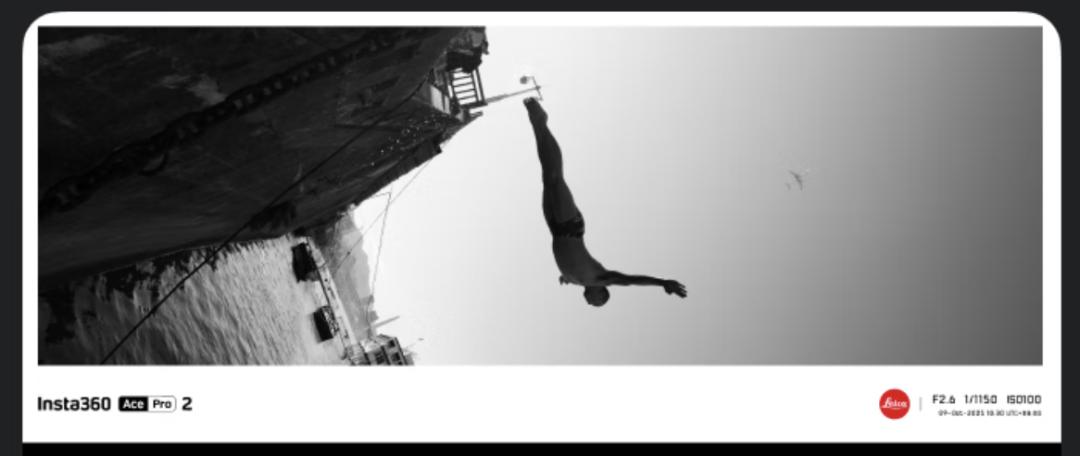 影石和徕卡有联名,Ace Pro2 也顺理成章地继承了联名回来的徕卡色彩和徕卡水印,可以直接调用徕卡的色彩和风格。
