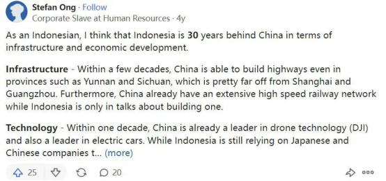 有印尼网友是这样说的:“现在的印尼,不如30年前的中国。”