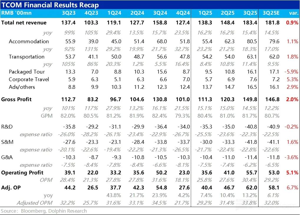 11 月 18 日早美股盘后,携程公布了 2025 财年 3 季度财报,本次业绩表现依然稳健,收入和利润都比预期稍好,具体来看: