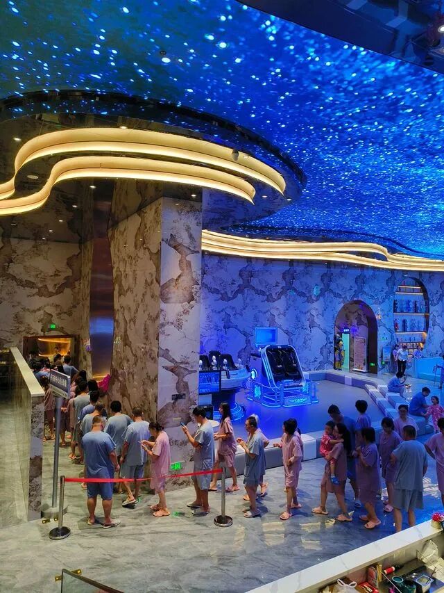 在停滞的时间里,有两个场景持续高速发展,一为KTV,二为澡堂子。二者不分伯仲,都是一场聚会的终场,看心情选择声嘶力竭酩酊大醉,还是穿着浴衣开麻将房。区别是前者定位清晰,各有各的核心客户,且只能在晚上暗渡陈仓,成为一种悄咪咪的本地生活。而后者则乘上流量时代的东风,装扮得愈发富丽堂皇,宛如主题游乐场,还可作为城市名片,吸引南方小土豆,害羞的就去泡私汤。毕竟洗白白天经地义,比起淄博烧烤也不遑多让。