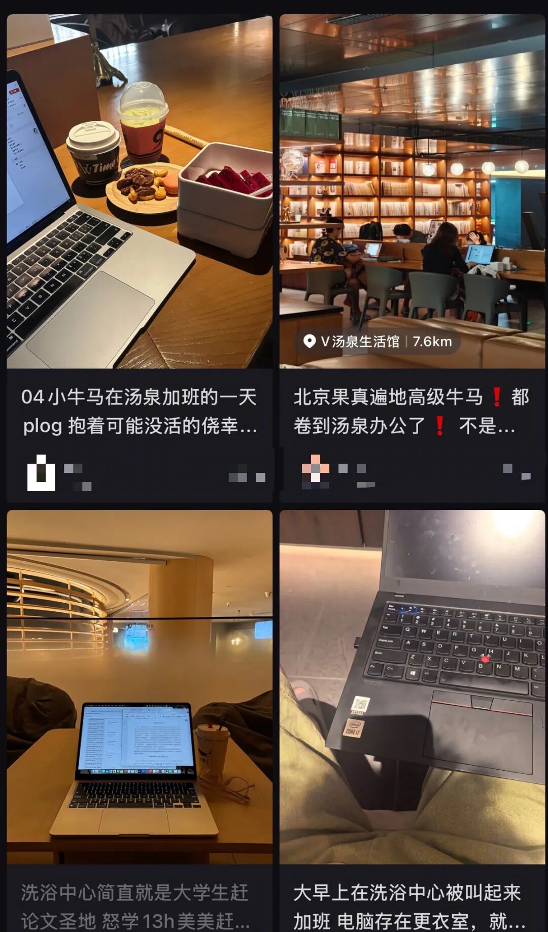年轻人洗浴中心加班已成常态。图源小红书
