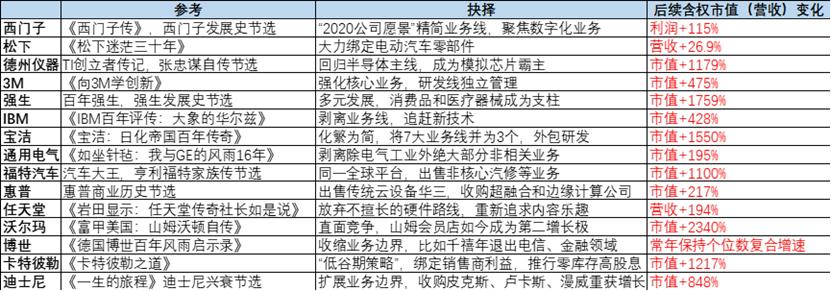 又如我们多次提及的丰田,在全球石油危机爆发、车企纷纷寻求新业务以弥补汽车行业增速放缓之际,通用收购休斯顿飞机,福特涉足金融,最终均遭反噬。而专注于生产工艺革新的丰田,反而成为全球汽车行业龙头。