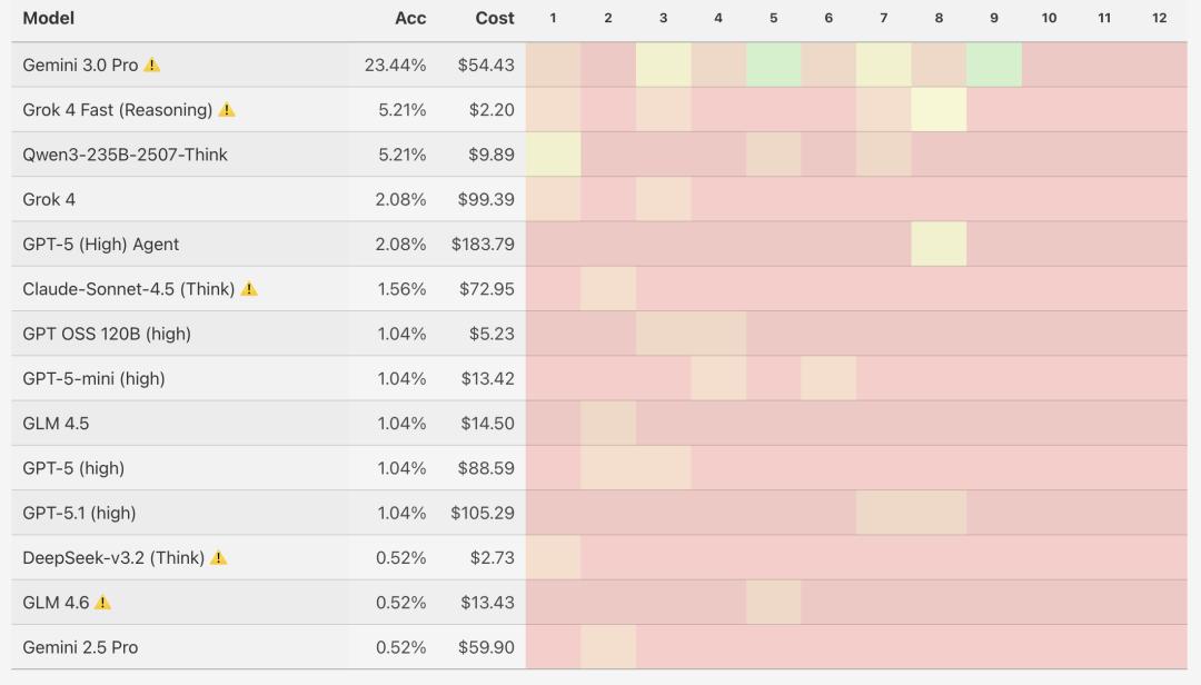 ARC-AGI-2测试,被誉为 AI 界的图灵测试,旨在衡量模型处理从未见过的新颖推理任务的能力,而非死记硬背。