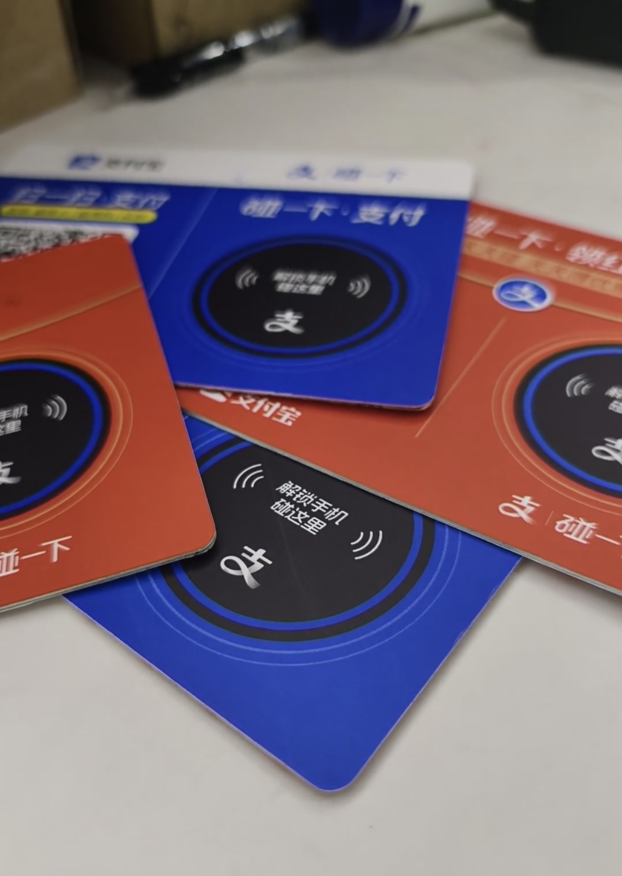 把 NFC 硬件做成成本较低(甚至极低)的贴纸形式去推广,小店和个体户也终于跟上了 NFC 支付的新浪潮。针对不同环境场景和商家喜好形态,支付宝亦提供了立牌、凸台、一体化挂式凸台等更多 NFC 硬件呈现形式。