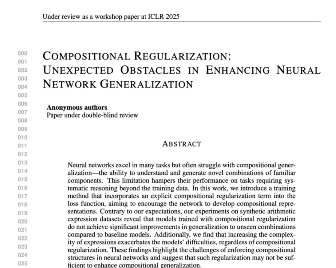 结果,其中一篇论文《组合正则化:增强神经网络泛化的意外障碍》获得了6/7/6评审分数,超过平均人类接收门槛。