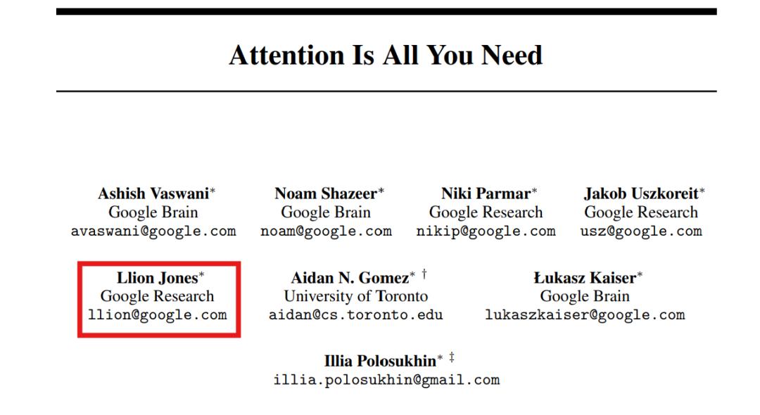 也正是在此期间,他与其他七名作者一起发表了那篇著名的Transformer论文《Attention Is All You Need》。