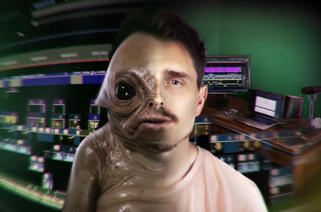 等到镜头和画面都布置妥当后,他就用Runway的面部动作捕捉功能「唤醒」提姬:坐在转椅上,一边念着台词,一边表演外星人的神态,就像不用离开电脑椅的Andy Serkis在电影《指环王》中的咕噜一样。