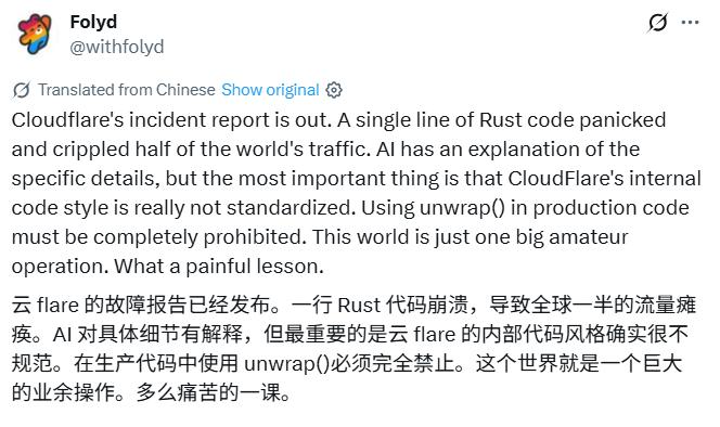 Cloudflare 故障报告中,专门指出了导致这次宕机的那行 Rust 代码。