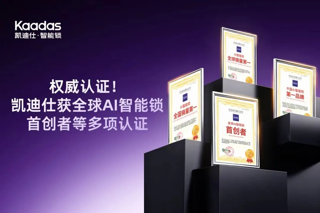 这家公司不仅在双11销量上表现强势,也获得了行业的权威认可——艾媒咨询近期授予Kaadas凯迪仕“全球AI智能锁首创者”与“中国AI智能锁第一品牌”等四项认证,进一步巩固了其行业地位。