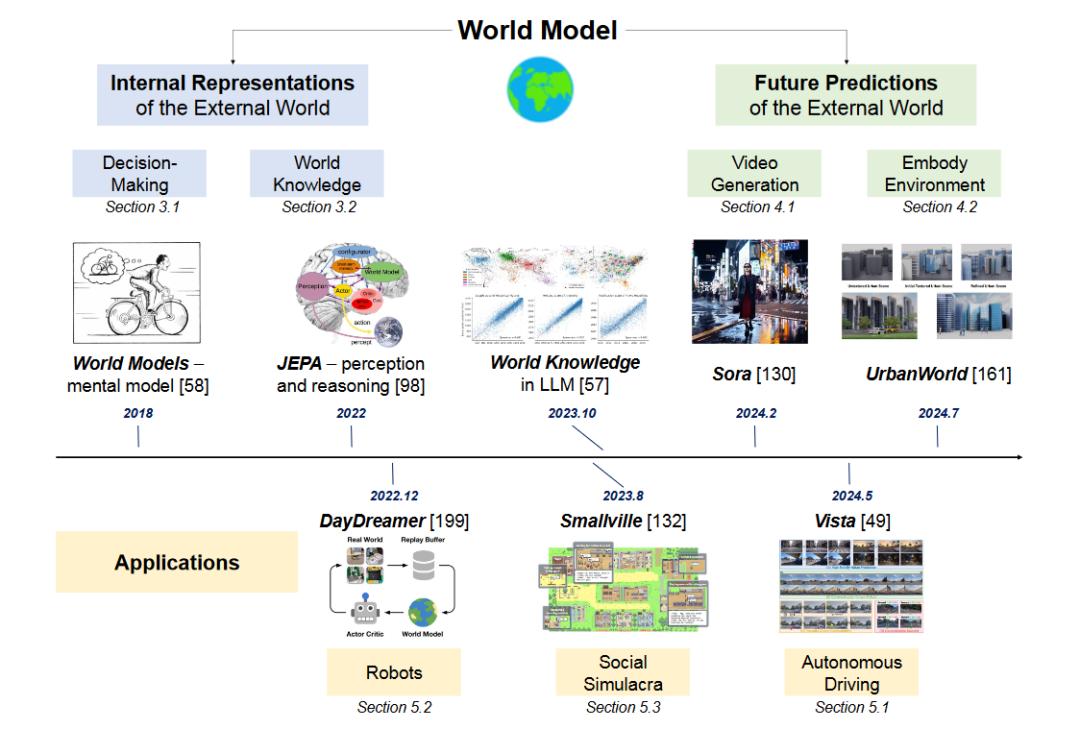 例如,2019年DeepMind发表的MuZero算法、2022年Yann LeCun提出的JEPA表征模型、2024年的视频生成模型Sora和城市环境生成模型UrbanWord等,都推动了世界模型在不同领域的应用探索。