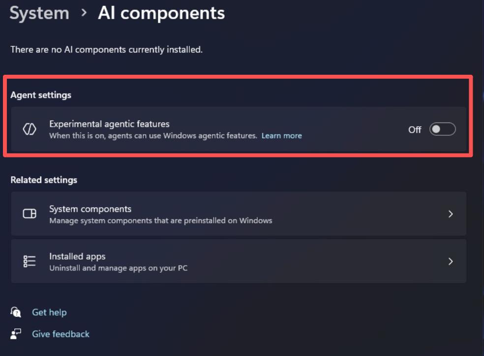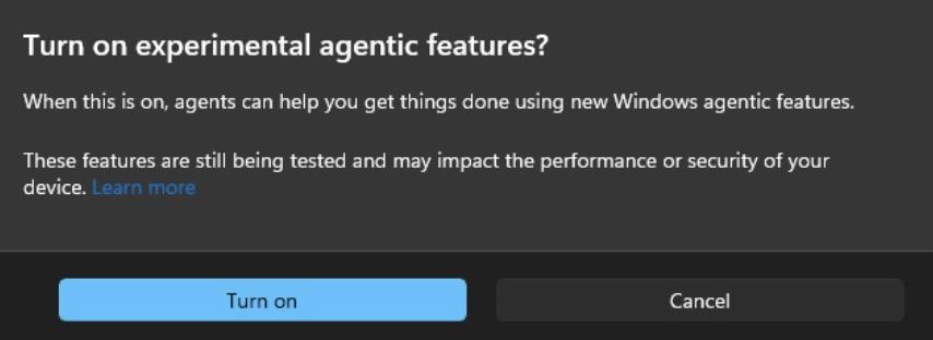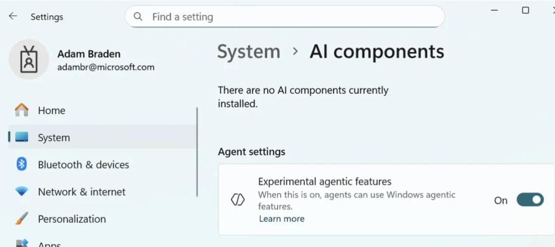 就在这一场争议的第二天,微软便向 Windows 11 内测用户(Dev 和 Beta 频道)推送了一个新的预览版本,该版本新增了一个名为“实验性智能代理功能”的开关,可在 Windows 设置中开启或关闭。