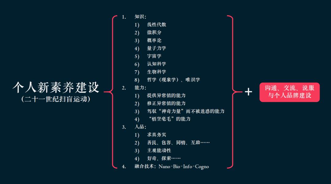但这并非自动实现的,它需要受初心的约束,并受持续优化和不断迭代的驱动。在21世纪的个人新素养建设中,我们有意留出了一个空白,现在将在这里进行收尾。