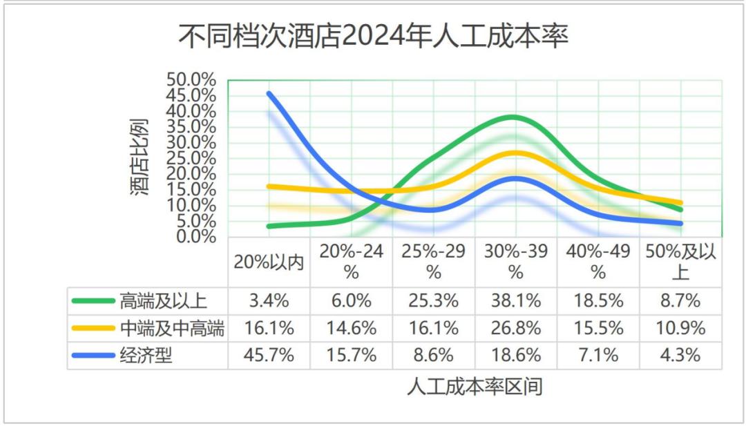 与此同时,《中国酒店人力资源现状调查报告(2025)》显示,酒店业人工成本率正持续上升,许多中高端酒店的人工成本占比已超过40%。