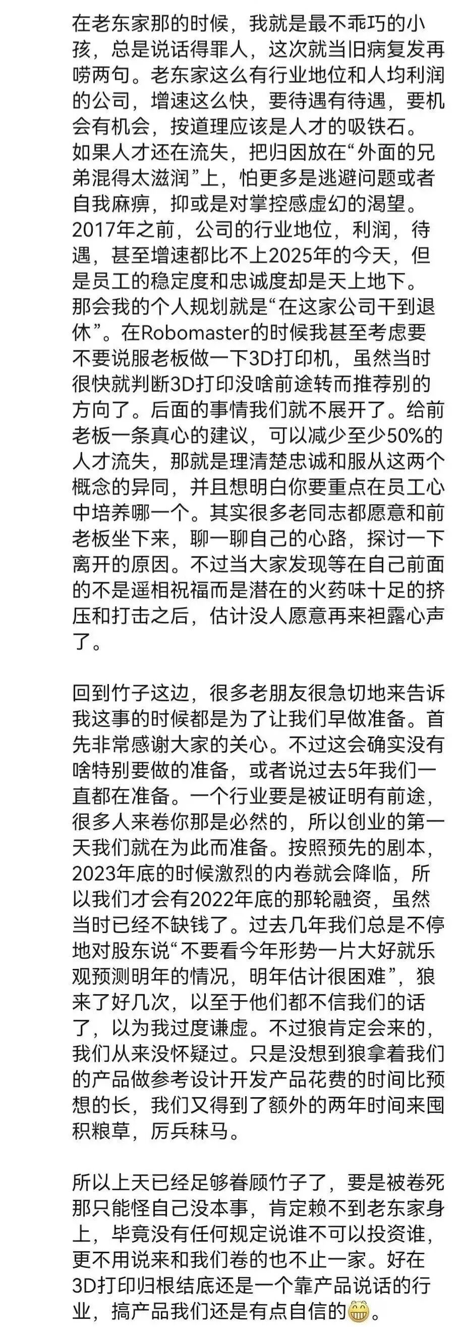 面对老东家动作明显的布局,拓竹创始人陶冶在朋友圈发布了长文回应(文末有该条朋友圈完整内容)。