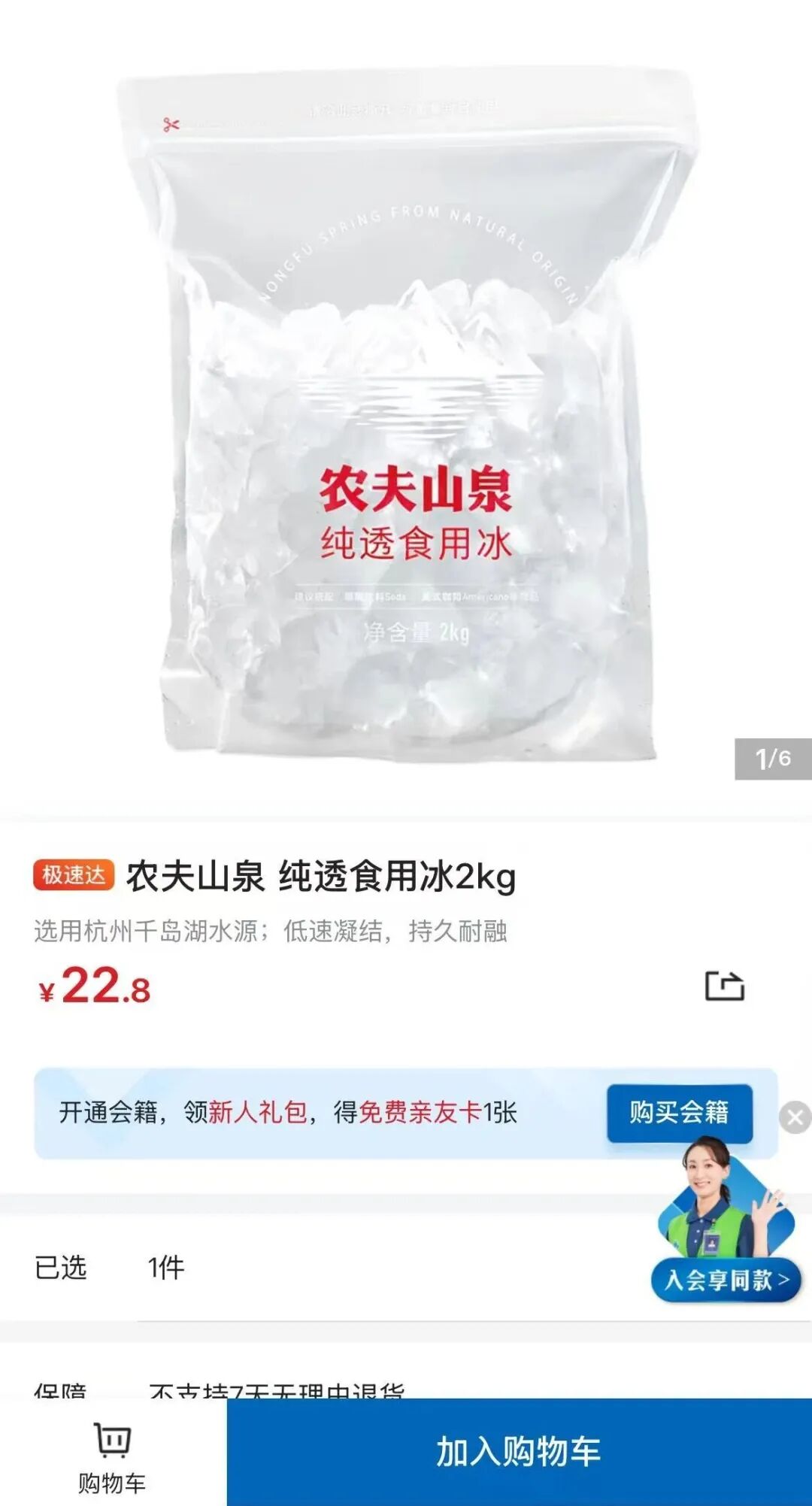 今年6月,农夫山泉继续发力食用冰产品——在山姆渠道上新了2kg袋装的纯透食用冰,售价22.8元,虽因价格较高引发了网友热议,但也一度出现供不应求的局面。记者注意到,该款食用冰产品确实满足了部分消费者的需求,如冰块融化得慢、适合在家自制冰饮等。