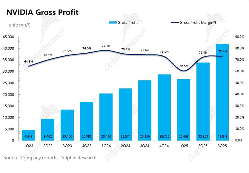 1)毛利率:本季度73.4%,环比提升1pct,主要是得益于Blackwell系列产品量产爬坡的带动;