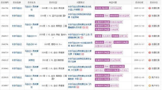 第三方汽车质量投诉平台显示,近半年针对长安马自达的投诉多达270余条,消费者反馈的主要问题包括冷却系统故障、转向系统故障、影音系统故障等。