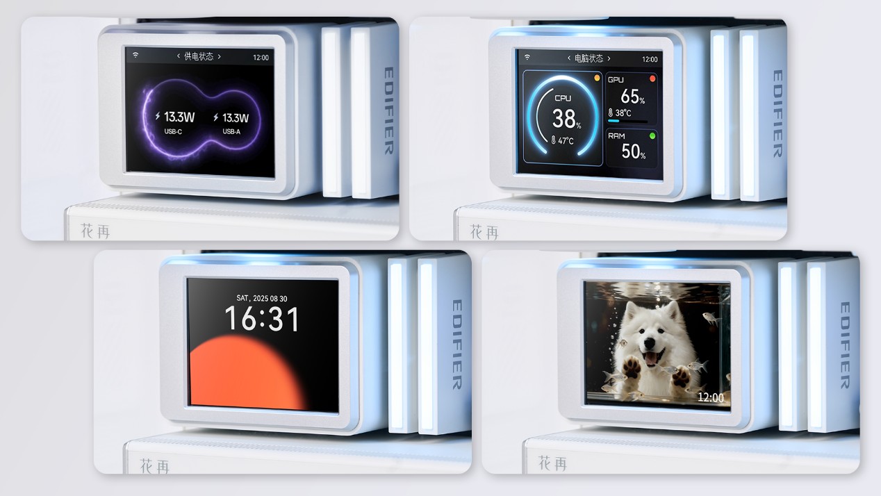 这是花再打破音频设备传统品类边界,开创性推出的音频行业创新品类,也是新一代的“桌搭神器”。产品通过聚焦“海景房设计、潮酷彩屏、沉浸光效、声学技术”四大核心维度,以“桌面全能中心”的定位,为消费者提供“桌搭美观、视听沉浸、个性定制”的需求满足。