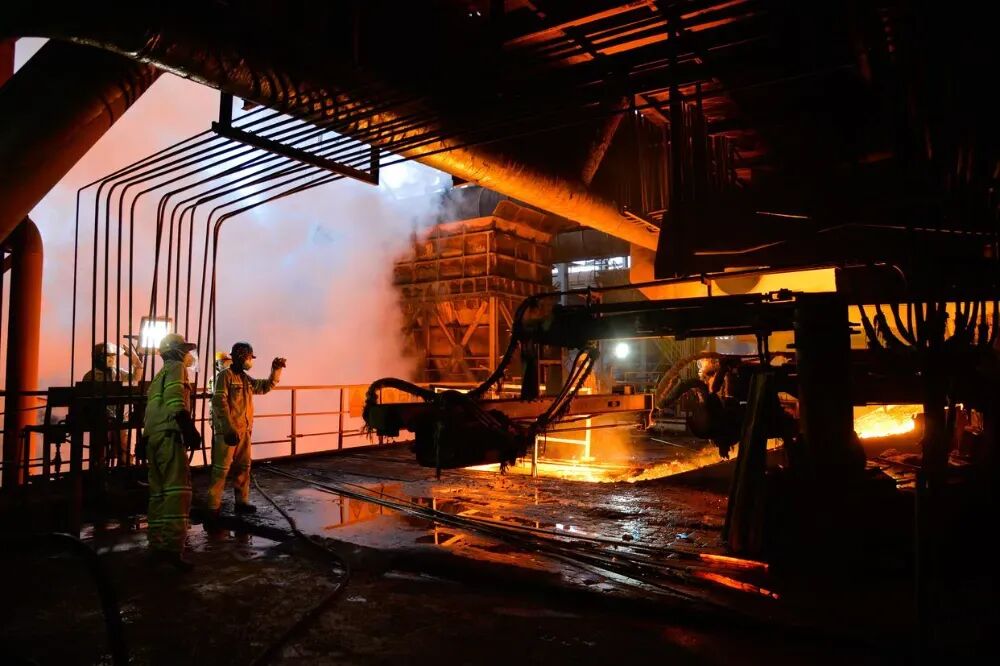 在印尼一家中资合资企业中,员工们正在镍铁生产线上工作 图片来源:新华社