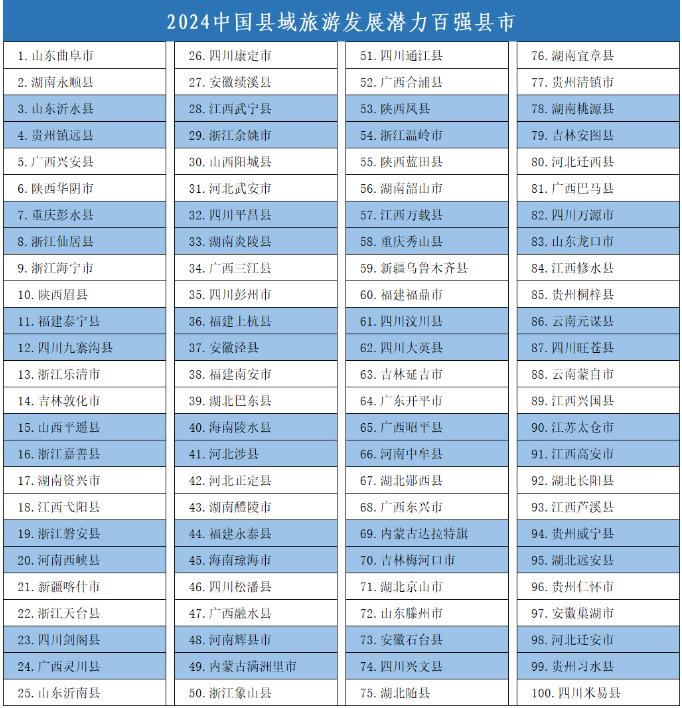 《全国县城旅游发展研究报告2024》,中国县城旅游发展潜力百强县市