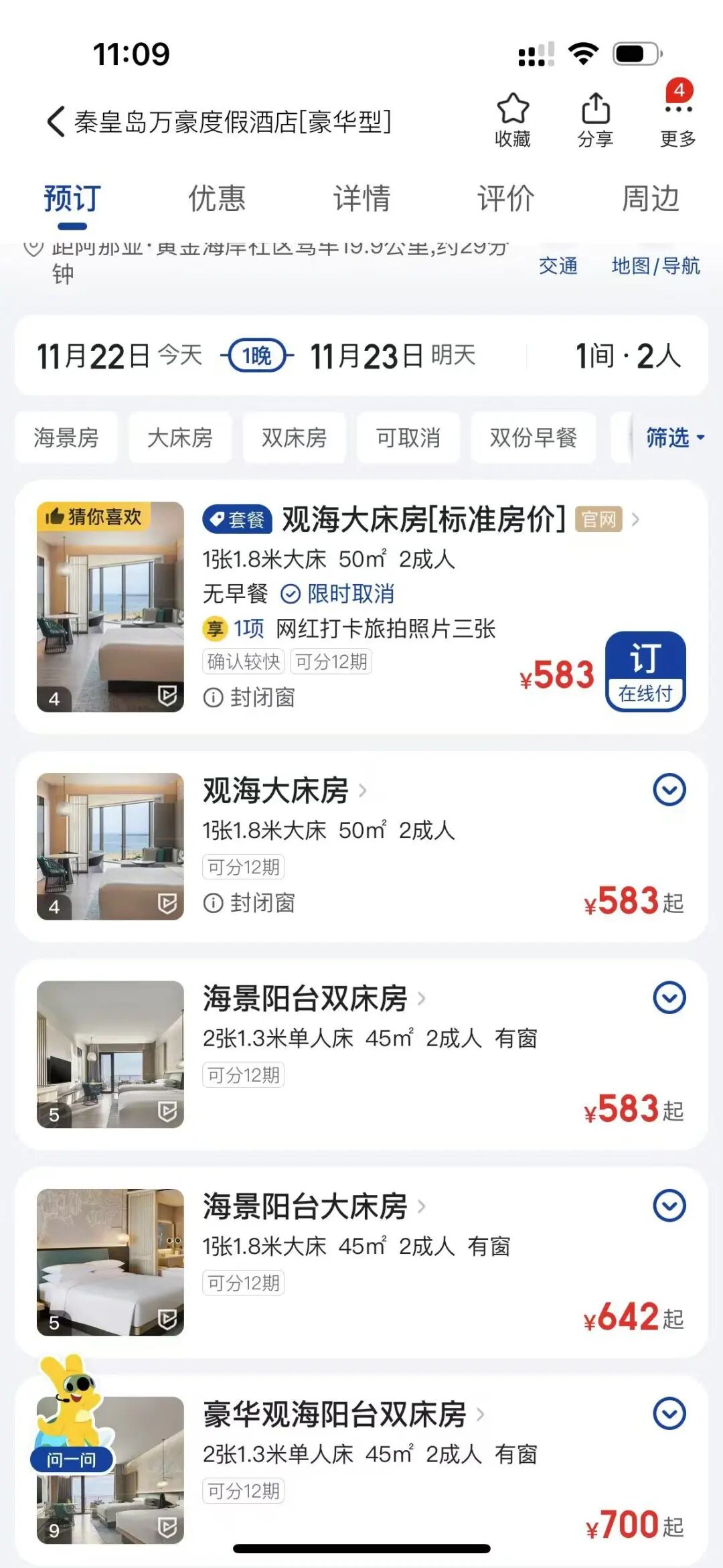 比如位于阿那亚海边的这家洲际酒店,普通周末的单晚价格,也能来到500-700元,主要面向的客群,自然是小资及中产家庭客户。