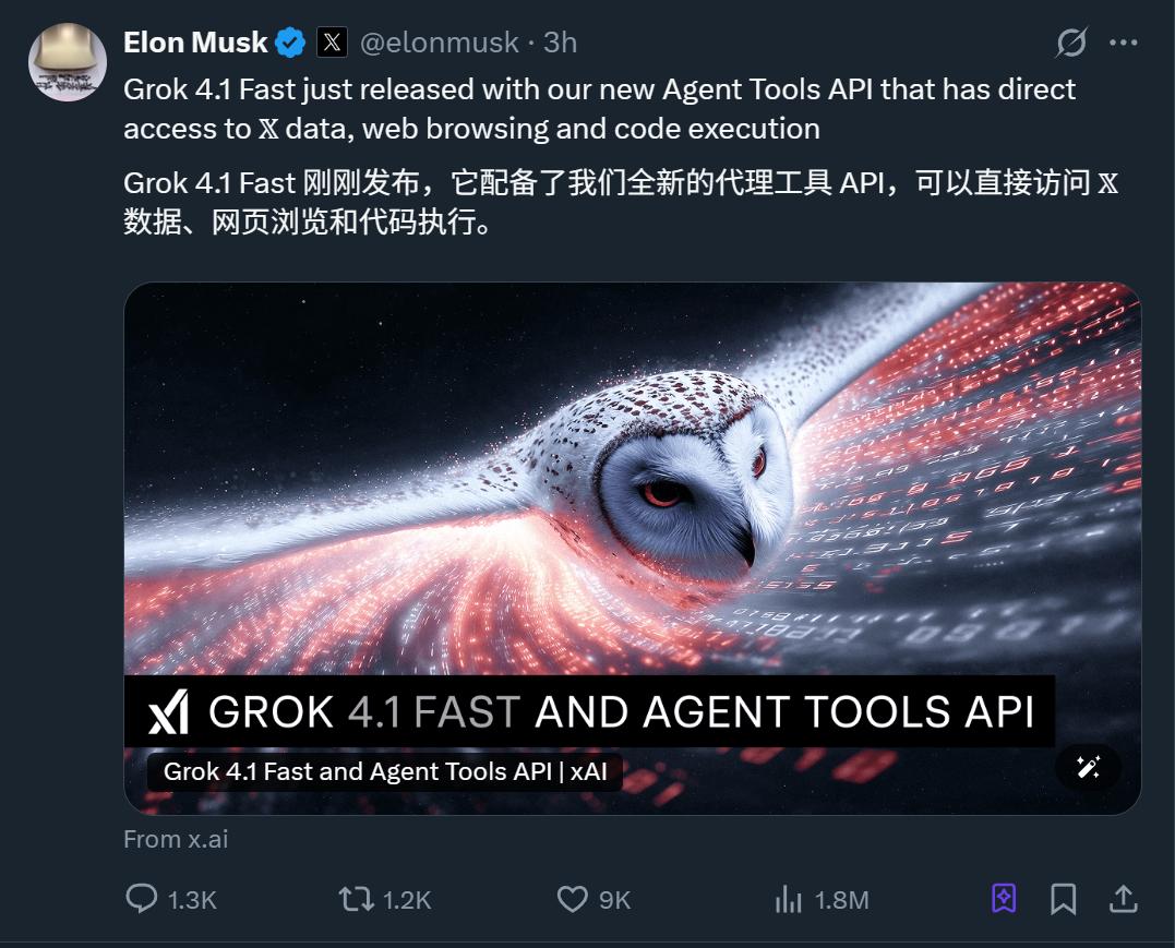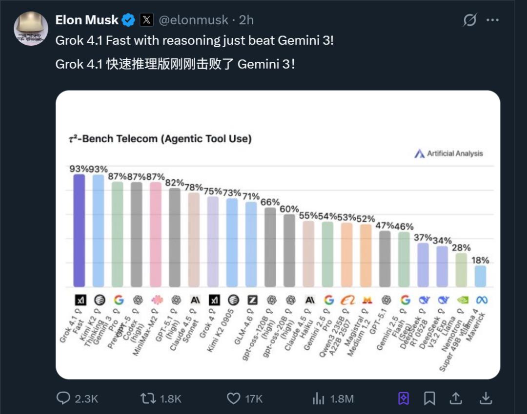反超Gemini 3,马斯克放出Grok4.1快速推理版,还曝出了新一轮150亿美元融资
