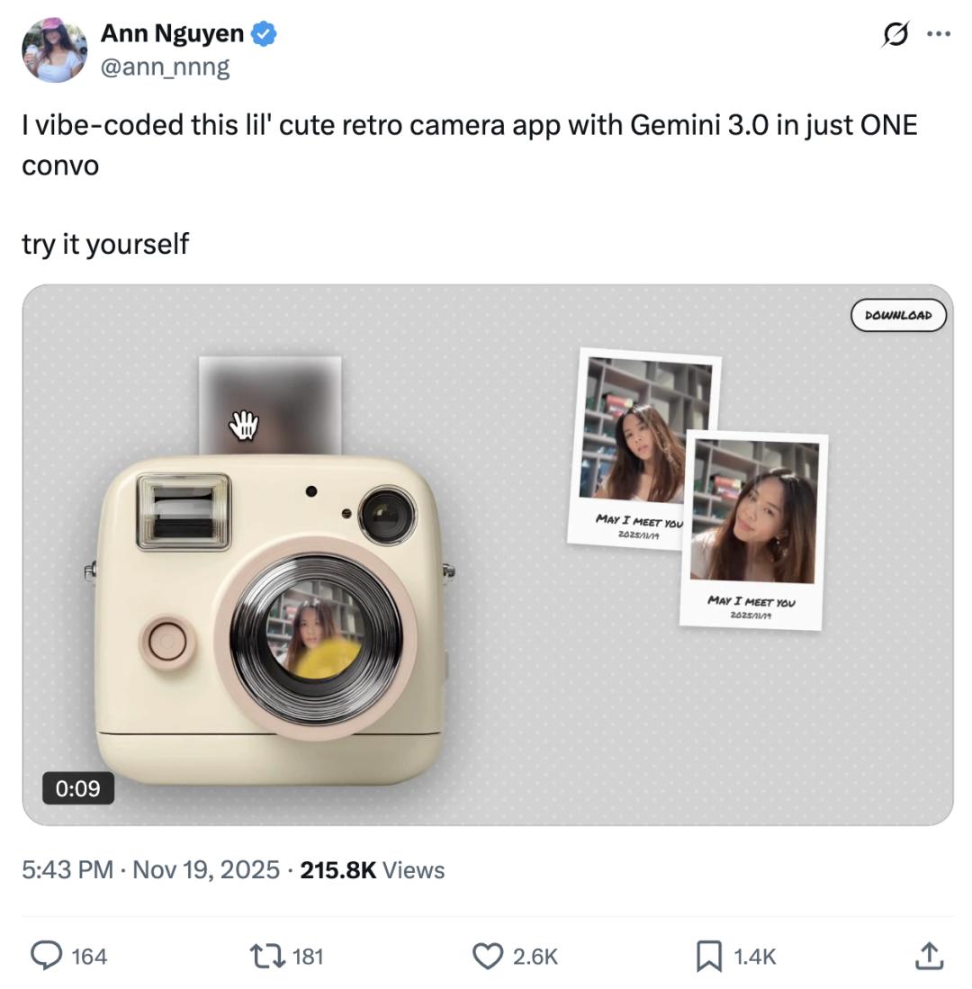 网友疯玩Gemini 3,AI造物门槛真是0了