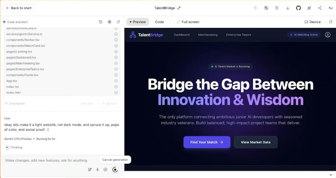 回到最直觉的感受上:Gemini 3 和上一代相比,最明显的差别其实是——它更愿意、也更擅长「帮你一起协作」。这也是 Google 对它赋予的期待。
