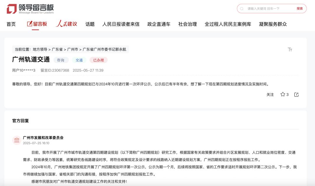 2018年至2020年间,包括广州、成都、武汉、西安、郑州、长春等多个城市的上一轮轨交规划密集获批,规划期均在近两年结束。其中,2023年到期的广州,根据今年7月广州发改委在政府留言板上的回答,正在“继续加强与国家、省相关部门的沟通衔接,按程序加快广州四期规划报批工作”。