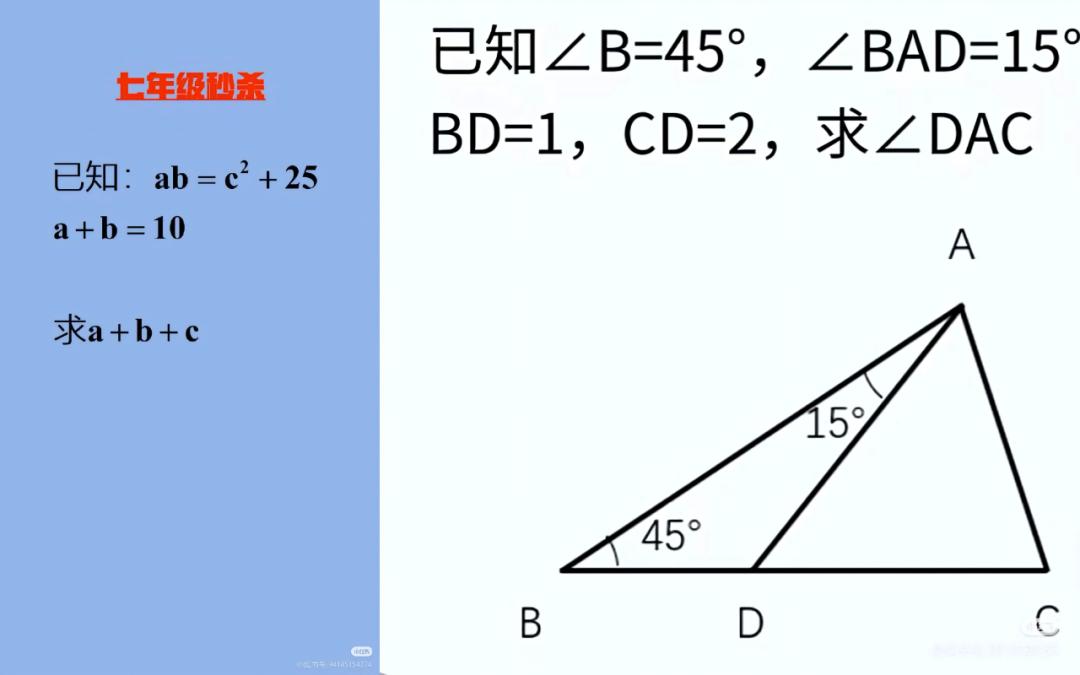 我们在网上找了两道题,一道代数题、一道几何题。