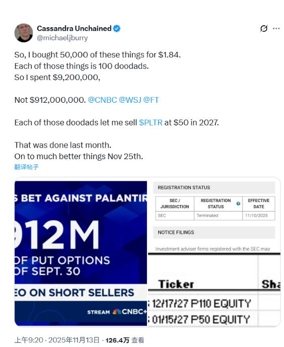 因成功预测2008年次贷危机而一战成名的“大空头”迈克尔·贝瑞在社交平台公开发言,当前科技行业资本支出的狂热增长与1999年互联网泡沫如出一辙,于是购买了1万份英伟达的看空期权。