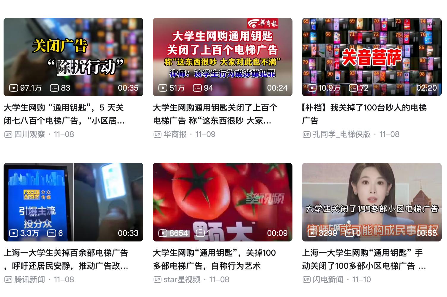 常刷B站、微博的大伙,最近应该都会看到一个让人拍手称快的热搜,一位大学生,凭一己之力,关停了小区内的100多块电梯广告,并将过程录制视频上传网络,引发社会热议。