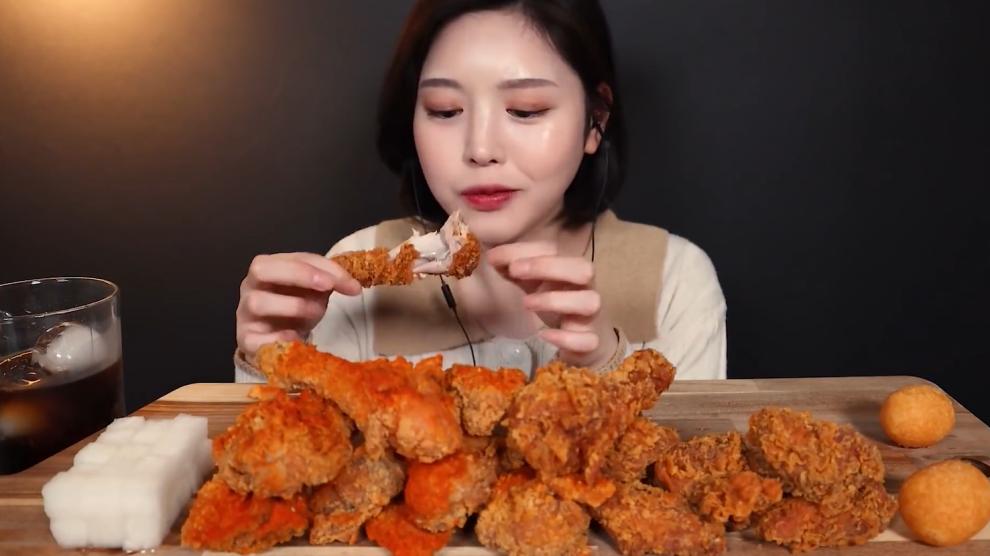 虽然不吃,但可以看,图为韩国博主文福姬吃播炸鸡