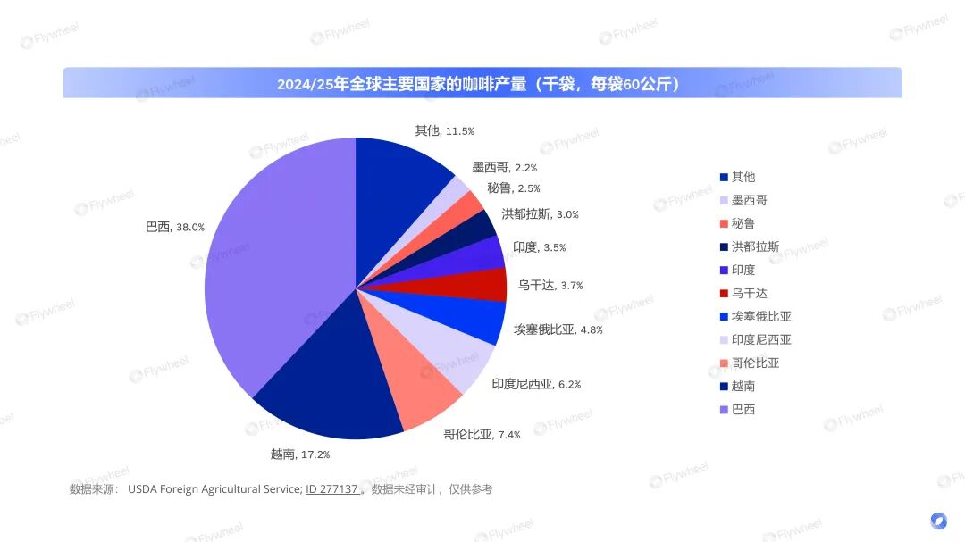 而在黄金地带,中国咖啡正以逐年递增的产量闯入世界版图,虽然目前仍不是主要的咖啡豆供应国家,但2025年的产量已在全球排名13,影响力逐步提升。