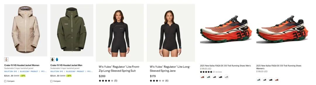猛犸象、巴塔哥尼亚和凯乐石部分产品