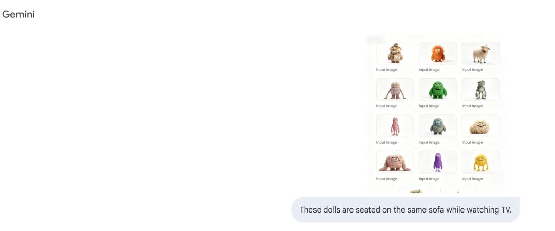 再试试图像融合呢~为了节省时间,我们直接把难度拉满——让14只娃娃坐在一起看电视。