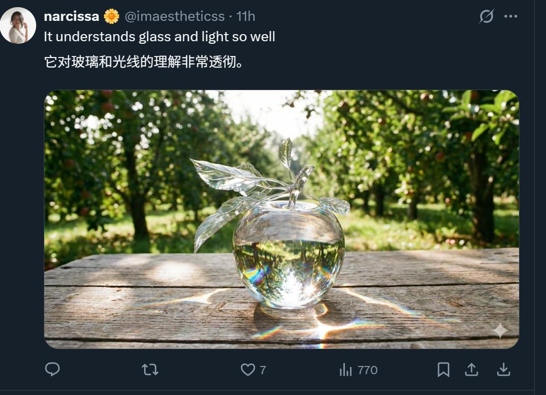 甚至,由于它对物理世界的理解更强了,所以生成的透明物体也经受住了光影考验。