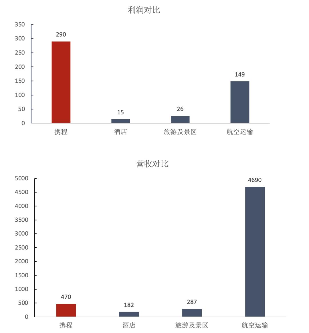 然而,对比营收来看,酒店、景区、航空运输三大子板块在今年前三季度的收入合计约5159亿,同期携程只有470亿。这意味着携程以不到整个旅游链10%的营收,却产生了超过整个旅游链90%的利润,当前业务模式的盈利效率令人咂舌。