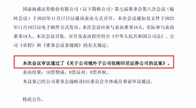 国泰海通日前发布公告,董事会已同意由境外子公司收购一家印尼券商。这是完成合并后的万亿券商巨头首次重大国际化布局,不仅宣告这家头部机构正式启动印尼业务落地,也成为其深化东南亚市场的关键一步。