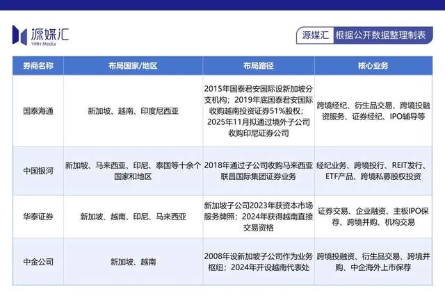 除了国泰海通之外,国内其他头部券商也正以多元化的策略,积极切入东南亚多国市场。