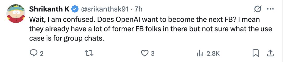 ChatGPT 对很多人来说是最个人化的账号,把社交体验放进去会显得奇怪。